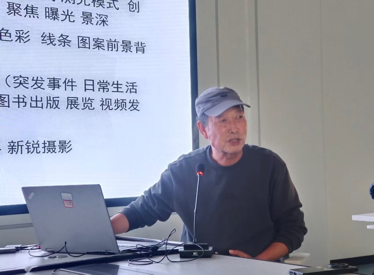 培训紧密围绕行政工作与学部宣传实际需求展开。邬教授借助演示图片,开展沉浸式教学:先从手机、相机、GOPRO运动相机、无人机等多样化影像采集工具的功能设置入手,详细讲解文件格式、光圈快门、感光度等关键参数的运用;接着深入阐释构图取景里的角度选取、光位运用、色彩搭配、虚实处理等技巧,系统涵盖静态动态拍摄、单幅与组照创作、专题故事呈现等全流程要点。针对会务记录、新闻纪实、日常工作宣传等高频场景,邬教授还重点指导了瞬间捕捉、标题图说撰写、素材归类编辑等实用技能,助力提升宣传素材的专业性与传播力。